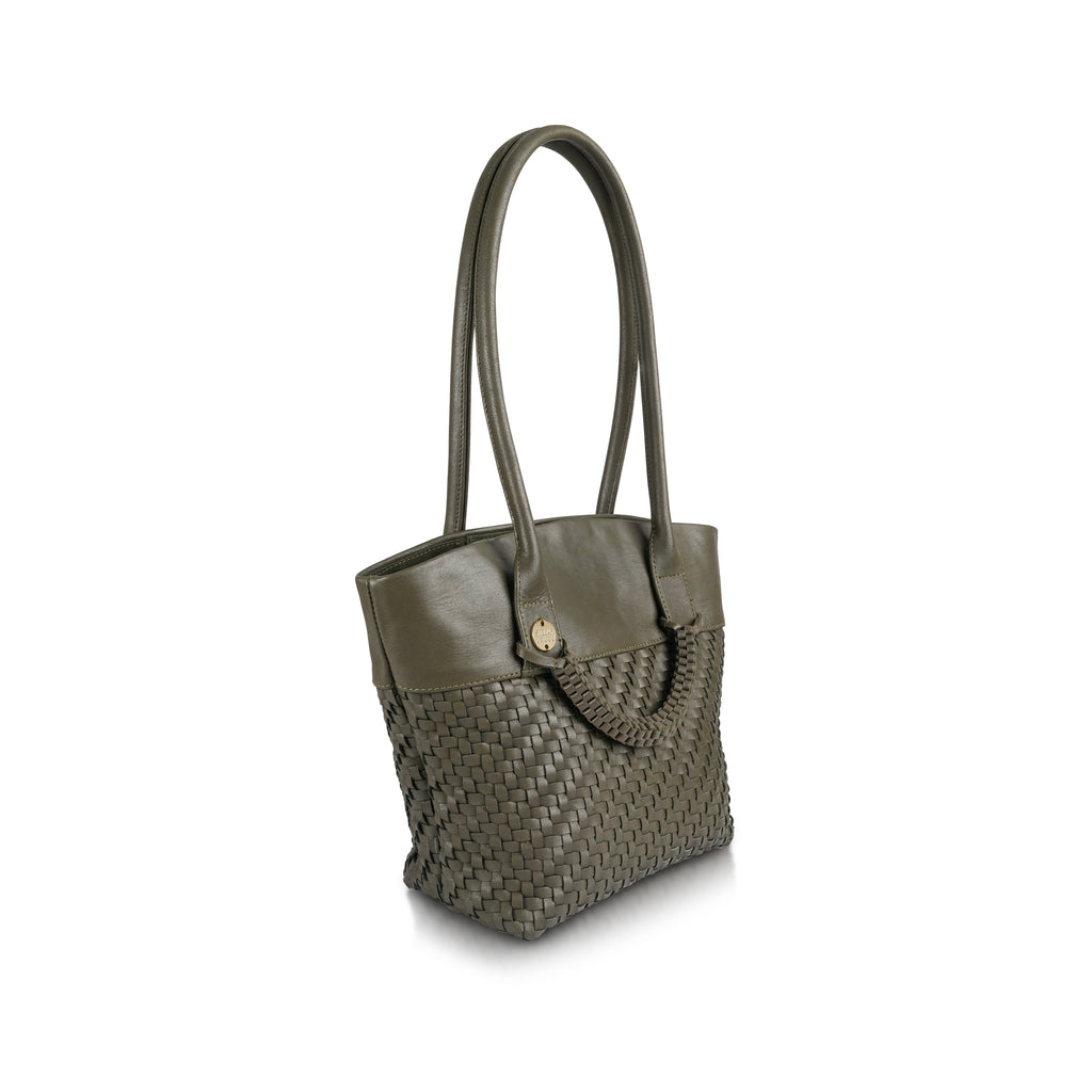 The slim straps rest comfortably on your shoulder, and the woven 'bracelet' feature can be personalised with playful bag charms or left as is for a chic detail.