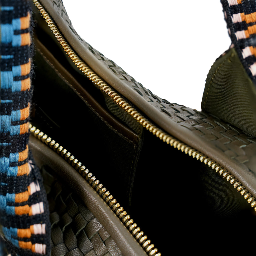 Our stunning Dark Olive weave creates a striking aesthetic for all your journeying needs. Made in a local artisan community, this weekender bag also comes with its own unique code that connects you to the artisan who handcrafted it in Bali.